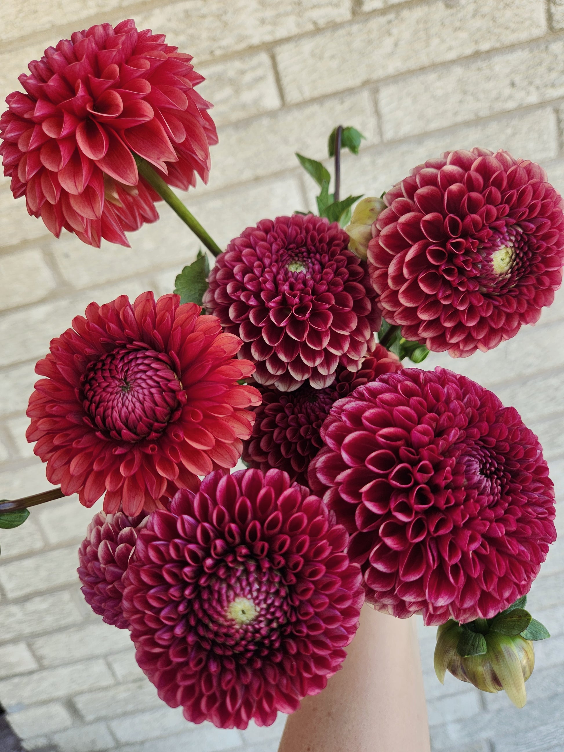 Deep rust colored ball blooms, roughly 3" across. Stems are short early in the season, but at least 14"+.