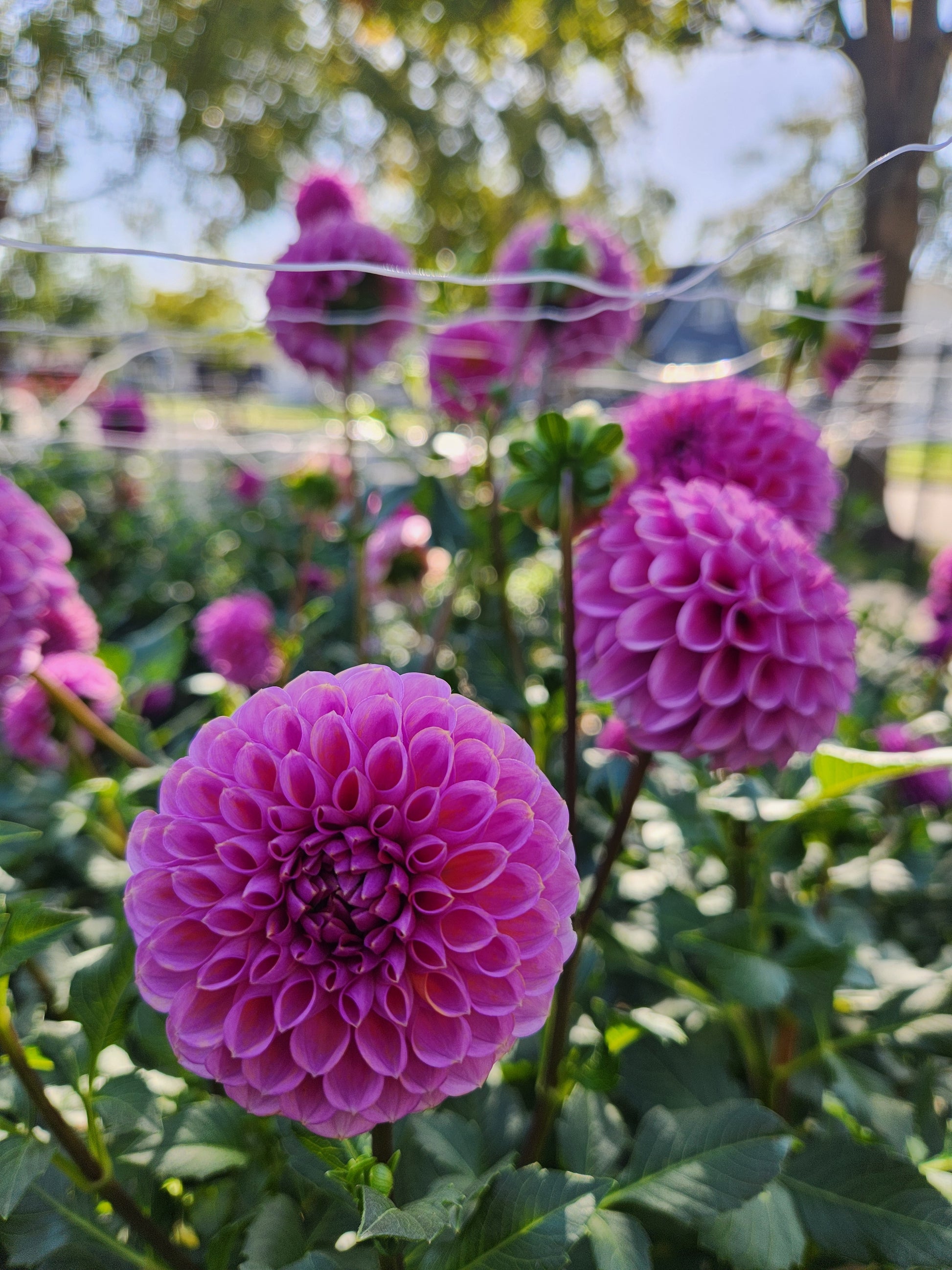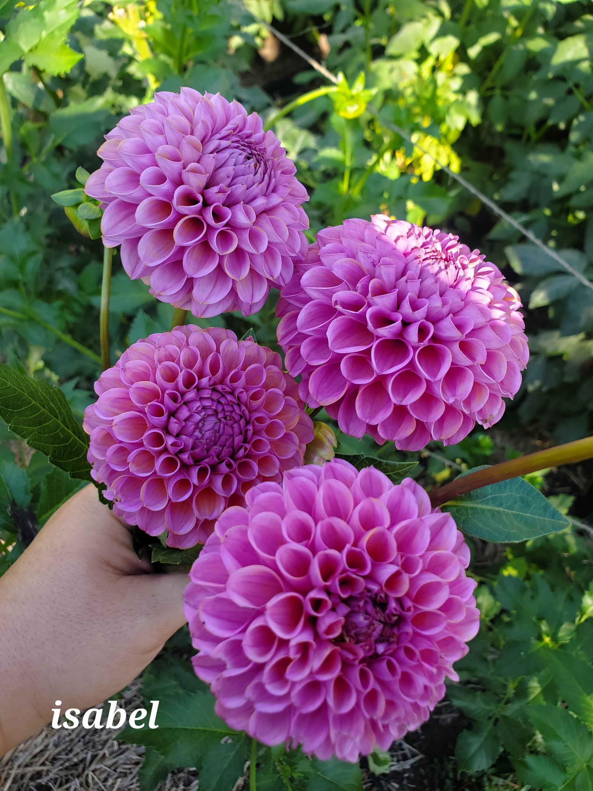 A mix of ball varieties in lilac, lavender, and medium purple. Blooms are about 3", on stems 16"+.