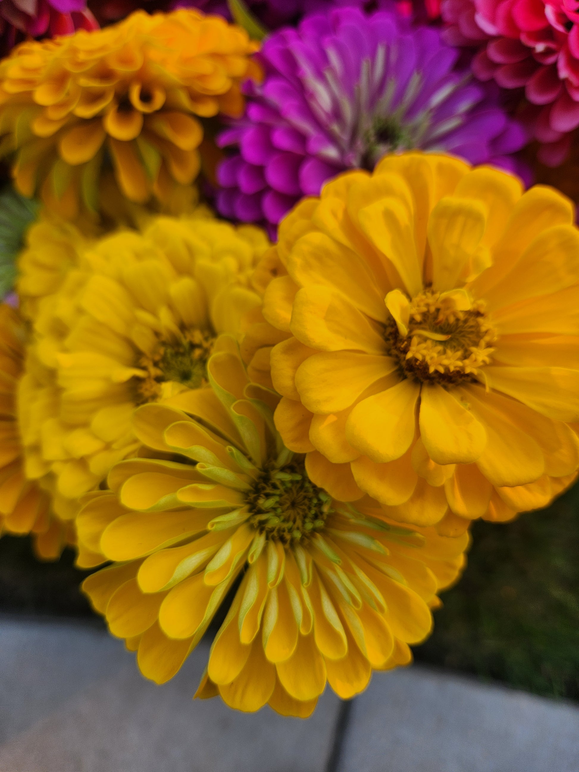 Large mostly double zinnias. Stems are still on the short side this early in the season, but will be 16"+.